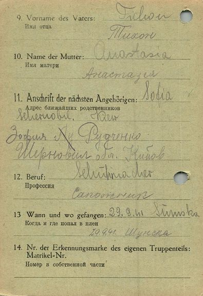 Военнопленные, трофейные карточки. Киевская обл.