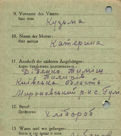 Военнопленные, трофейные карточки. Киевская обл.
