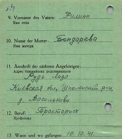Военнопленные, трофейные карточки. Киевская обл.