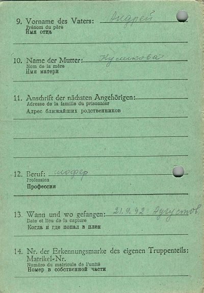 Военнопленные, трофейные карточки. Киевская обл.