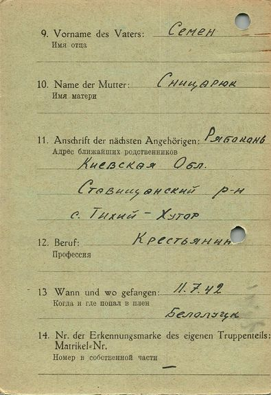 Военнопленные, трофейные карточки. Киевская обл.