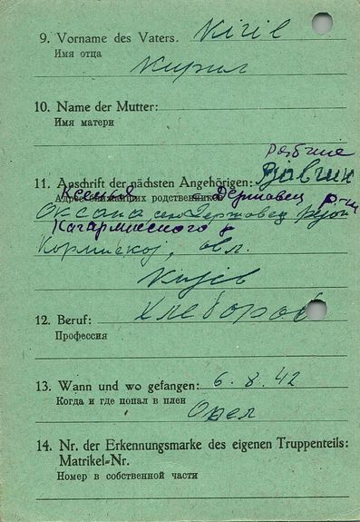Военнопленные, трофейные карточки. Киевская обл.
