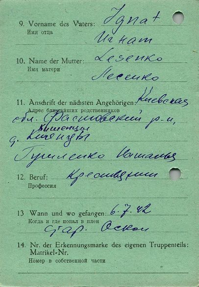 Военнопленные, трофейные карточки. Киевская обл.