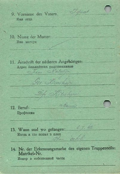 Военнопленные, трофейные карточки. Киевская обл.