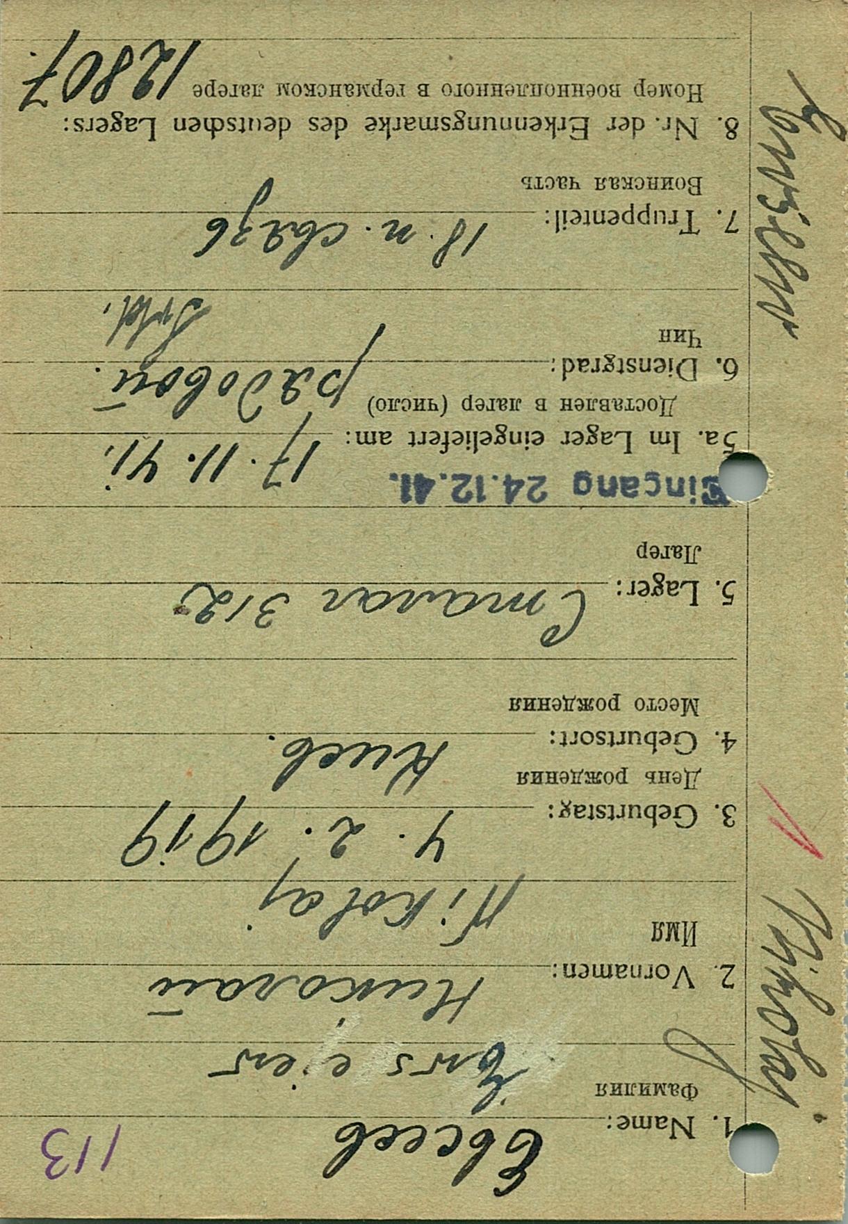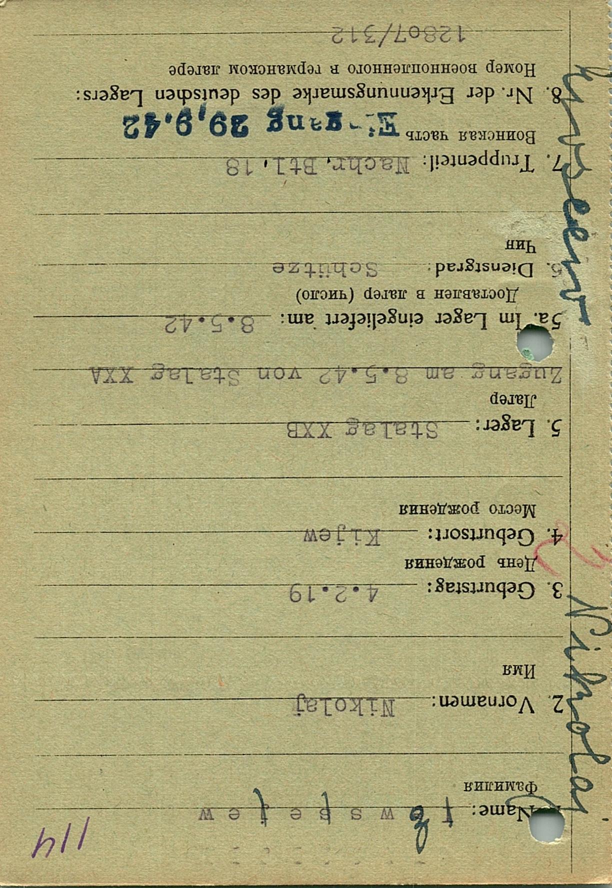 Военнопленные, трофейные карточки. Киевская обл.