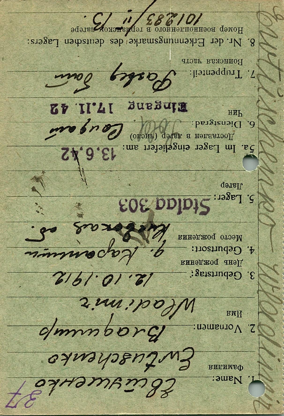 Военнопленные, трофейные карточки. Киевская обл.