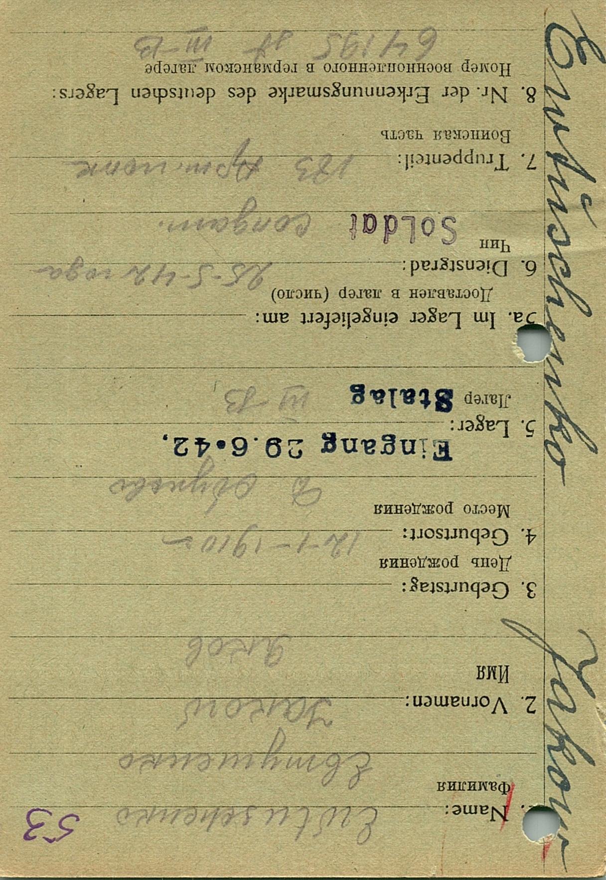 Военнопленные, трофейные карточки. Киевская обл.