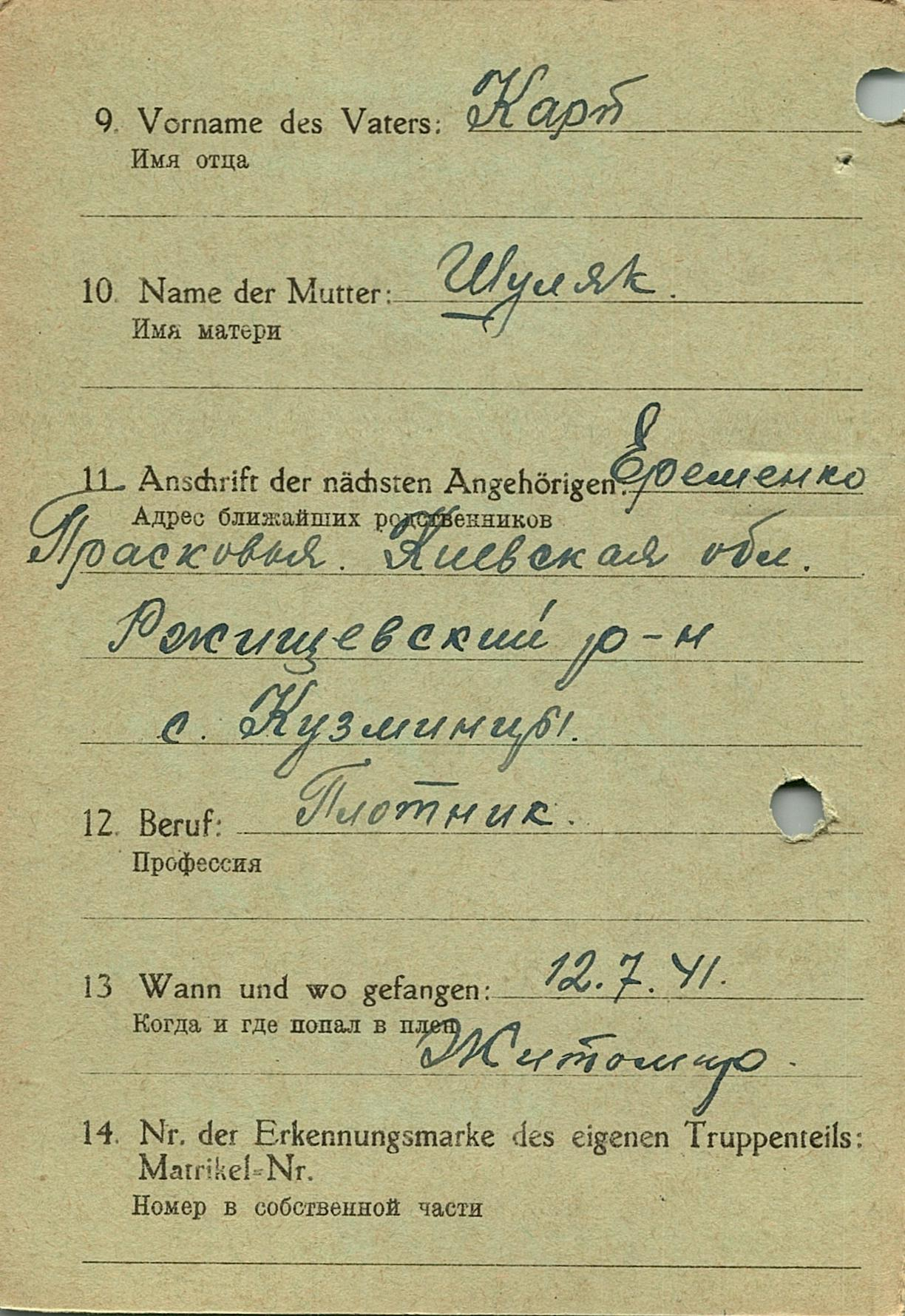 Военнопленные, трофейные карточки. Киевская обл.