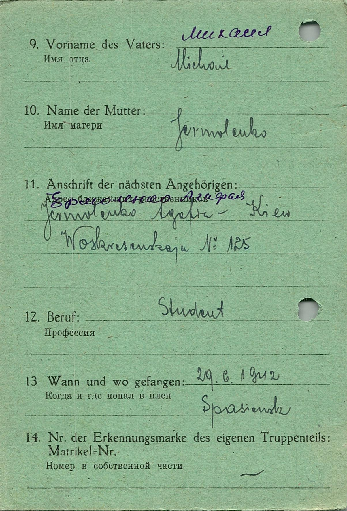Военнопленные, трофейные карточки. Киевская обл.