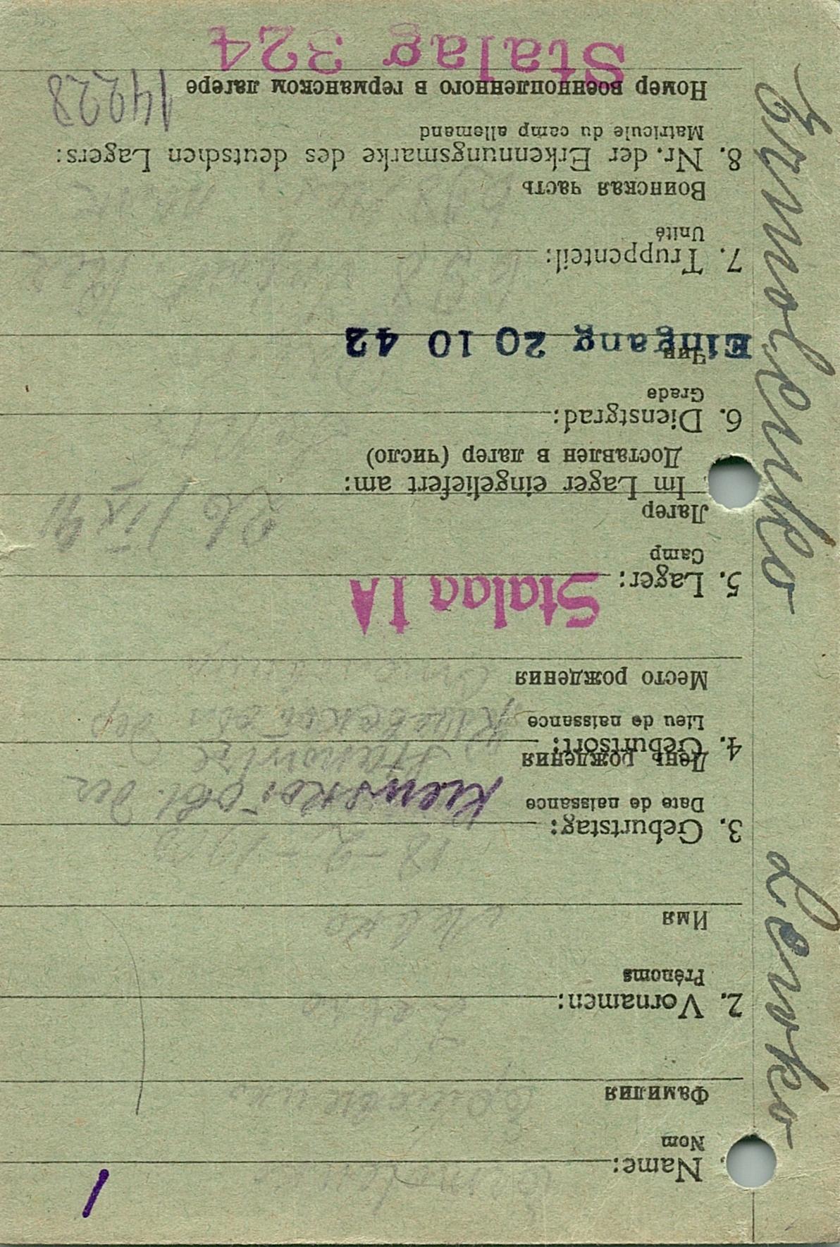 Военнопленные, трофейные карточки. Киевская обл.