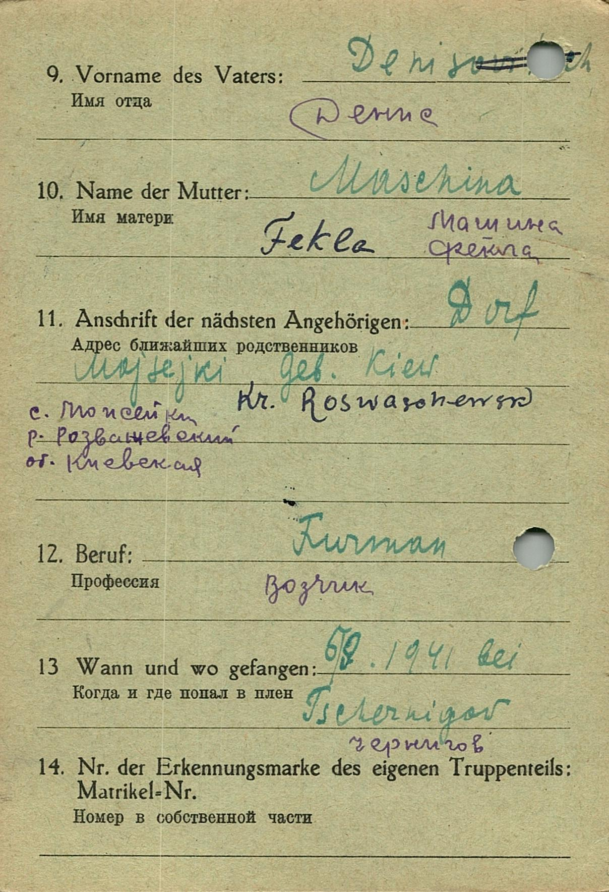 Военнопленные, трофейные карточки. Киевская обл.