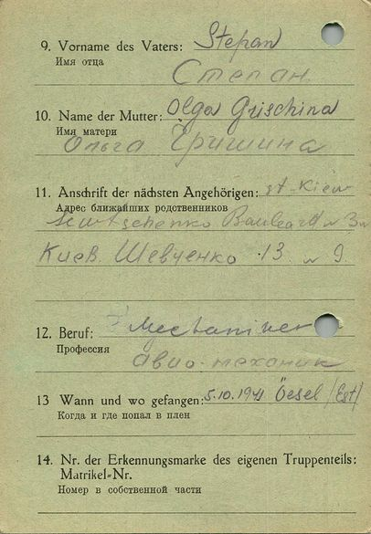Военнопленные, трофейные карточки. Киевская обл.