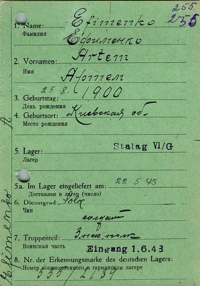Военнопленные, трофейные карточки. Киевская обл.