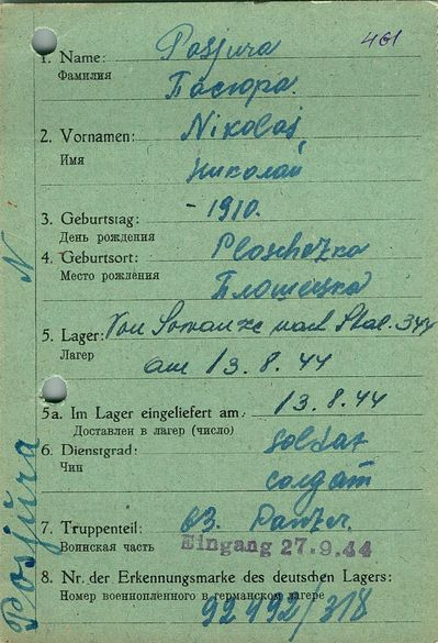 Военнопленные, трофейные карточки. Киевская обл.