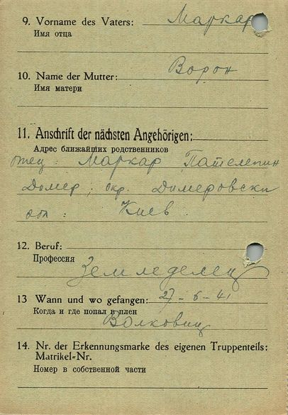 Военнопленные, трофейные карточки. Киевская обл.