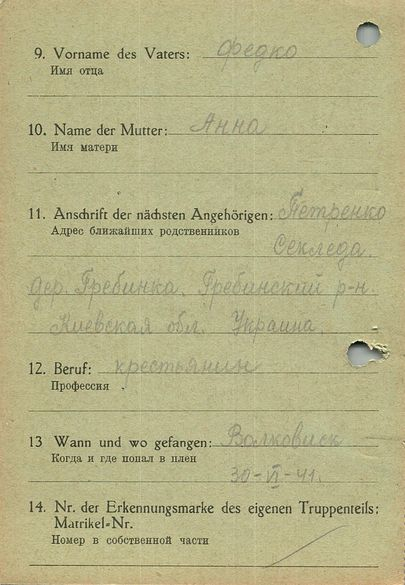 Военнопленные, трофейные карточки. Киевская обл.