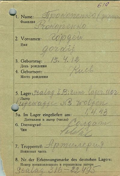 Военнопленные, трофейные карточки. Киевская обл.