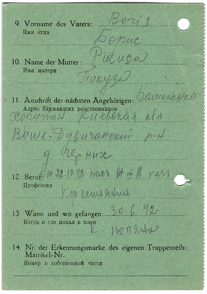 Военнопленные, трофейные карточки. Киевская обл.