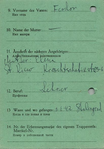 Военнопленные, трофейные карточки. Киевская обл.