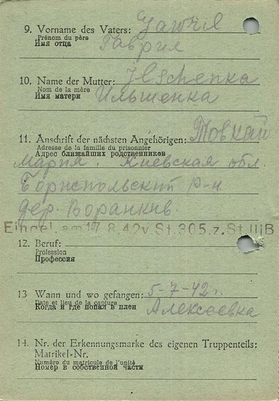 Военнопленные, трофейные карточки. Киевская обл.