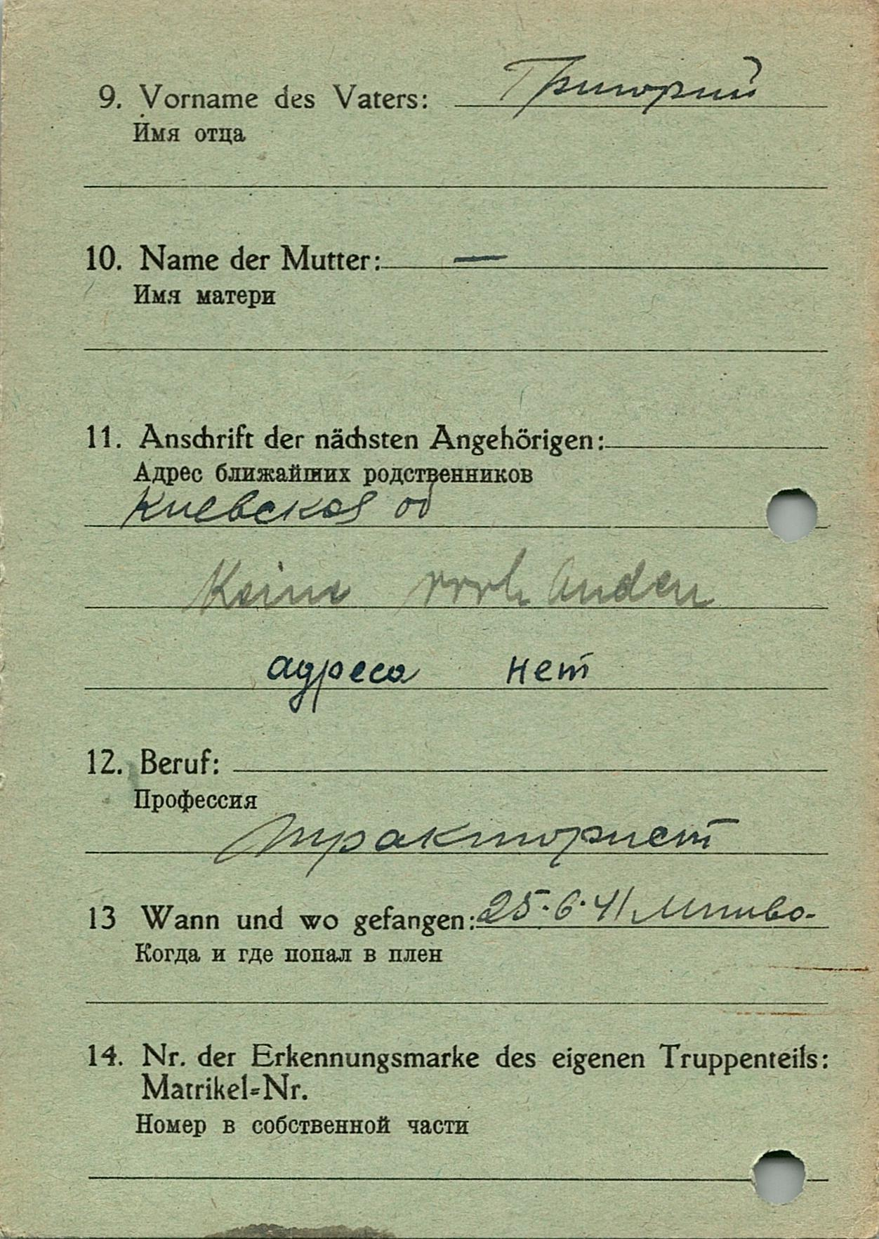 Военнопленные, трофейные карточки. Киевская обл.