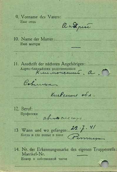 Военнопленные, трофейные карточки. Киевская обл.