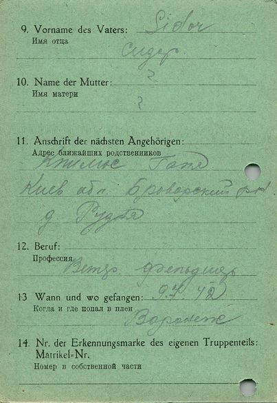 Военнопленные, трофейные карточки. Киевская обл.