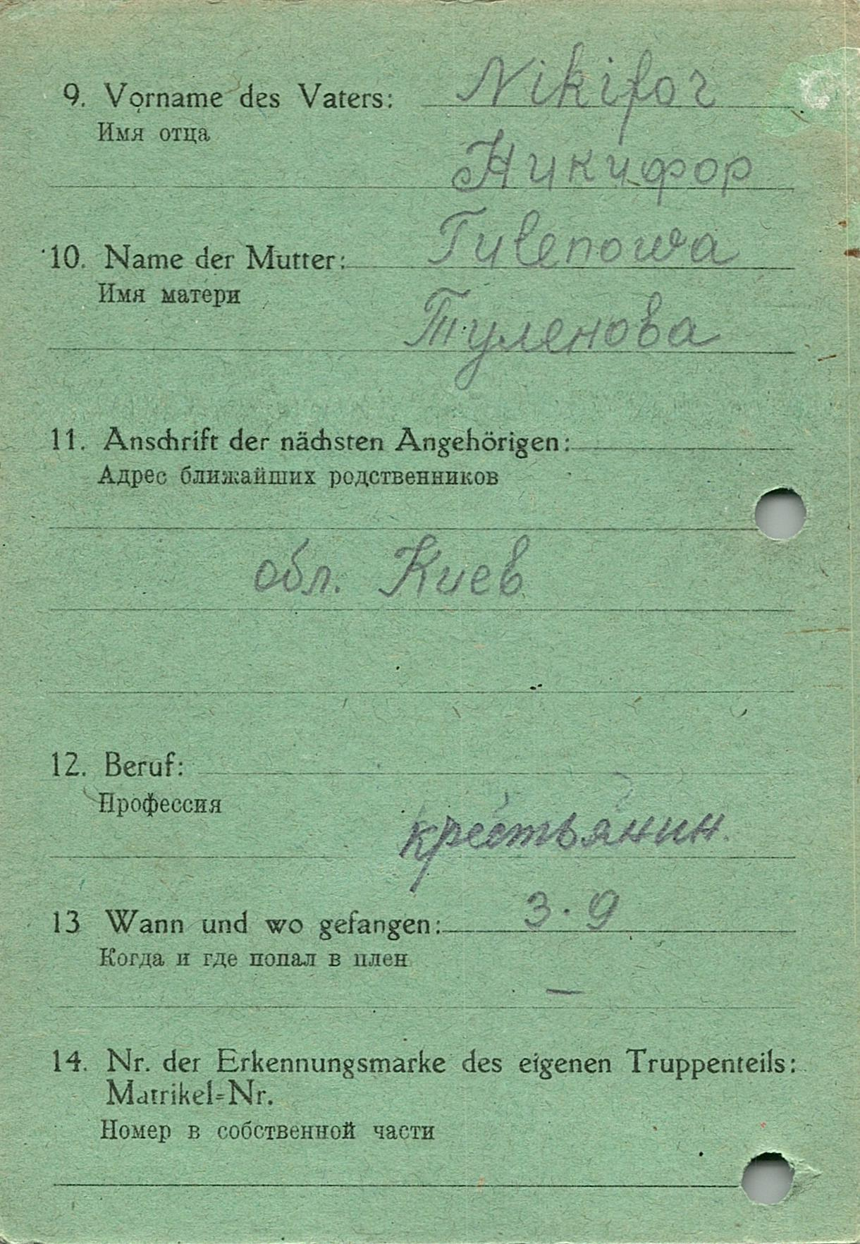 Военнопленные, трофейные карточки. Киевская обл.