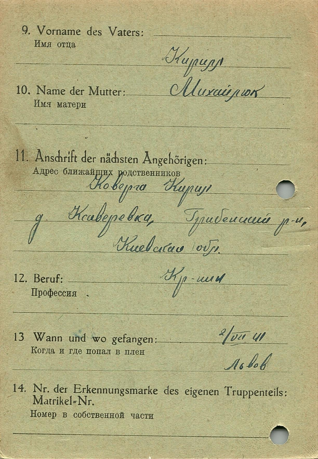 Военнопленные, трофейные карточки. Киевская обл.