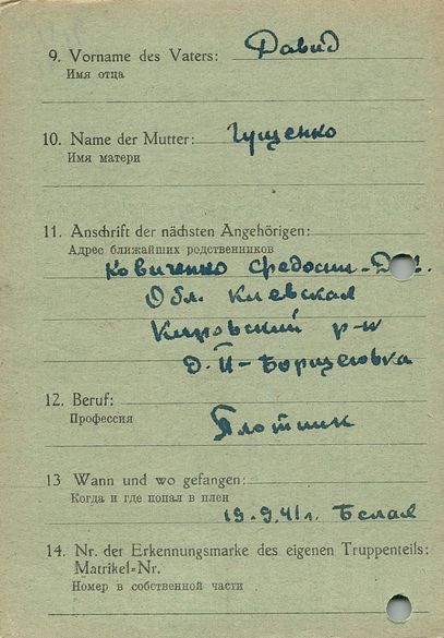 Военнопленные, трофейные карточки. Киевская обл.
