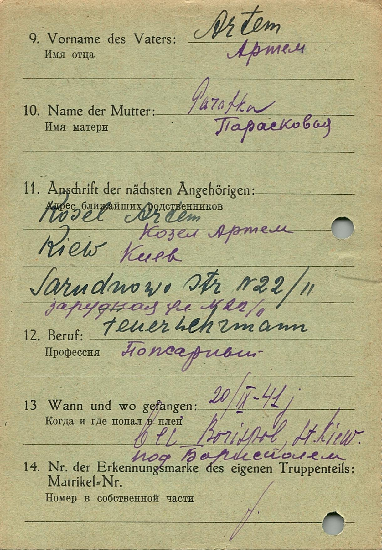 Военнопленные, трофейные карточки. Киевская обл.