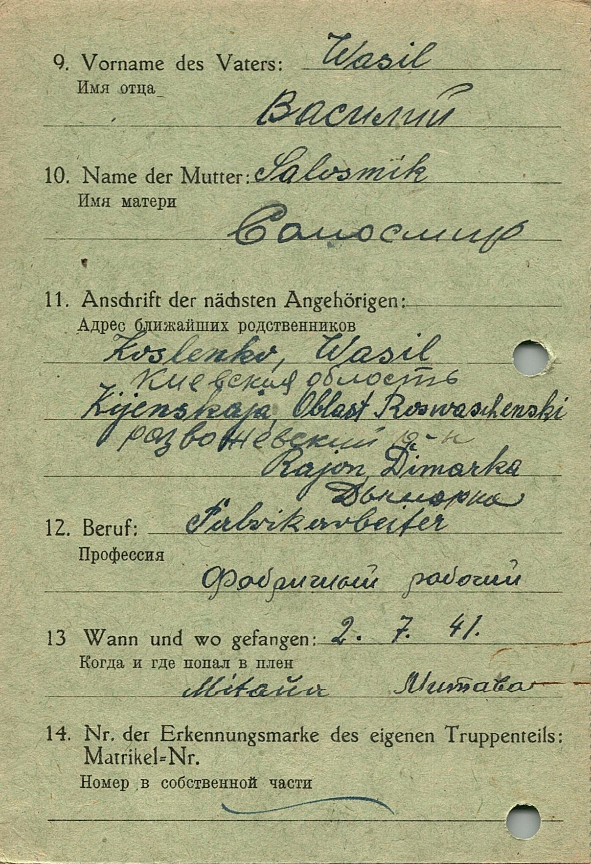 Военнопленные, трофейные карточки. Киевская обл.