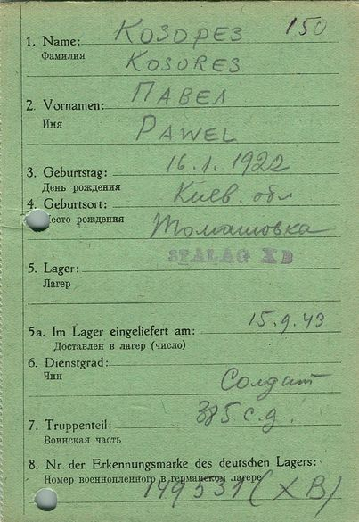 Военнопленные, трофейные карточки. Киевская обл.