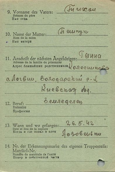 Военнопленные, трофейные карточки. Киевская обл.