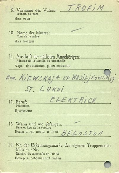 Военнопленные, трофейные карточки. Киевская обл.