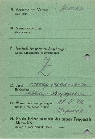 Военнопленные, трофейные карточки. Киевская обл.