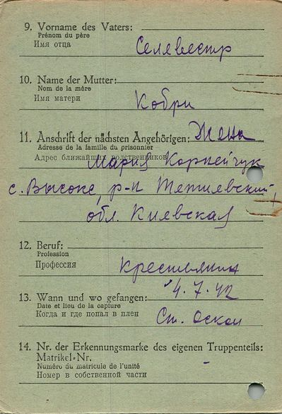 Военнопленные, трофейные карточки. Киевская обл.
