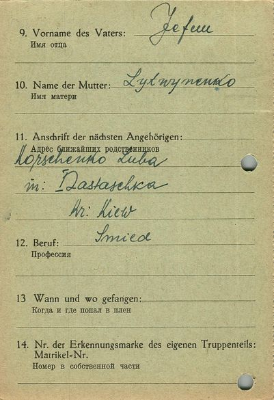 Военнопленные, трофейные карточки. Киевская обл.