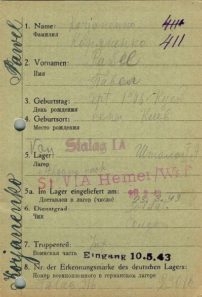 Военнопленные, трофейные карточки. Киевская обл.