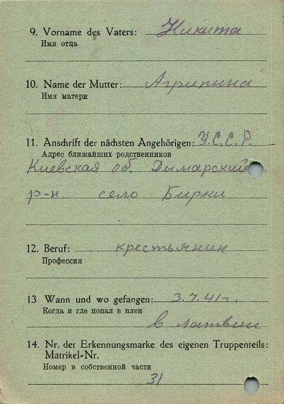 Военнопленные, трофейные карточки. Киевская обл.