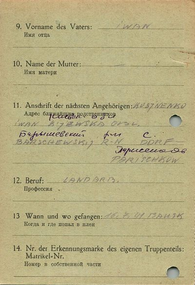 Военнопленные, трофейные карточки. Киевская обл.