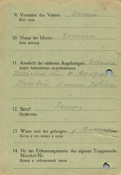 Военнопленные, трофейные карточки. Киевская обл.