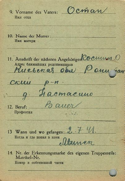 Военнопленные, трофейные карточки. Киевская обл.