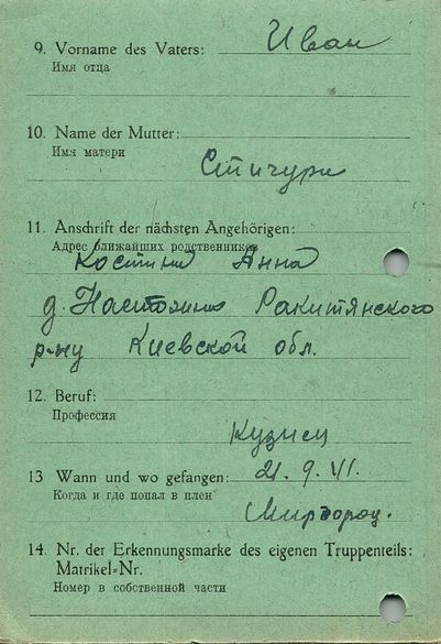 Военнопленные, трофейные карточки. Киевская обл.