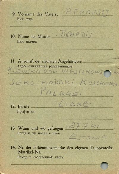 Военнопленные, трофейные карточки. Киевская обл.