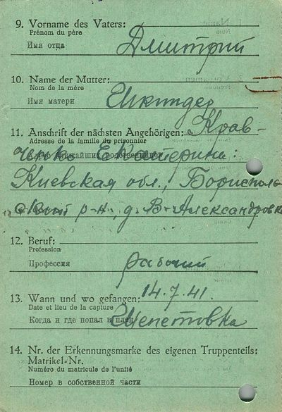 Военнопленные, трофейные карточки. Киевская обл.