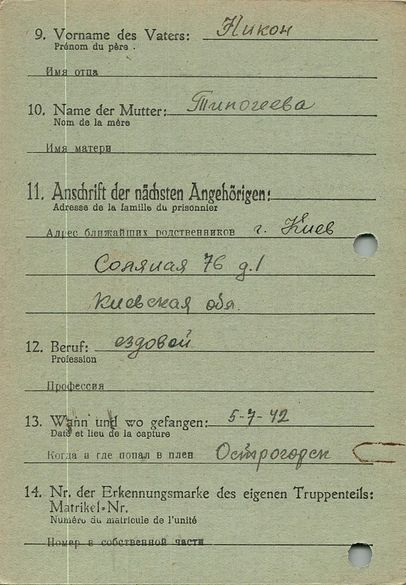 Военнопленные, трофейные карточки. Киевская обл.