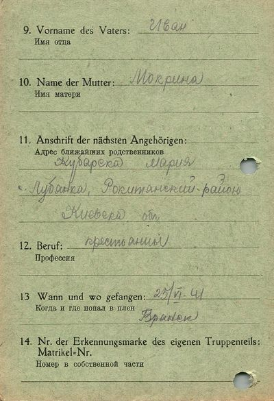 Военнопленные, трофейные карточки. Киевская обл.