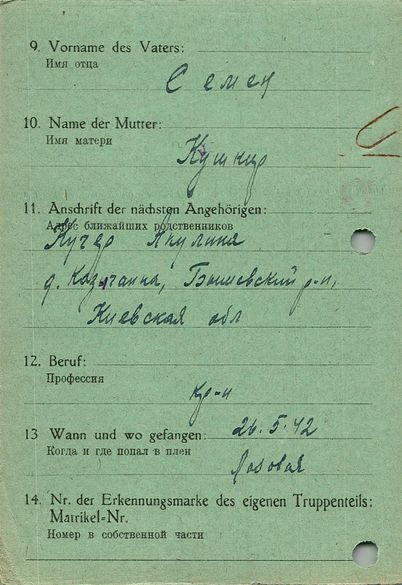 Военнопленные, трофейные карточки. Киевская обл.