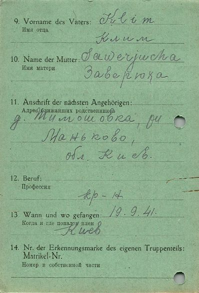 Военнопленные, трофейные карточки. Киевская обл.